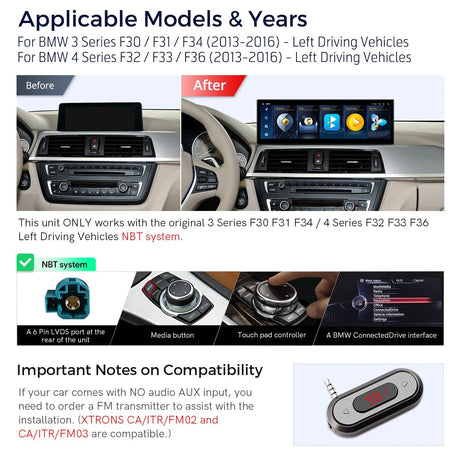 Xtrons 14.9" Head Unit Display Upgrade For BMW F3X 3/4 Series & F8X M3/M4 2013-2016 (NBT)