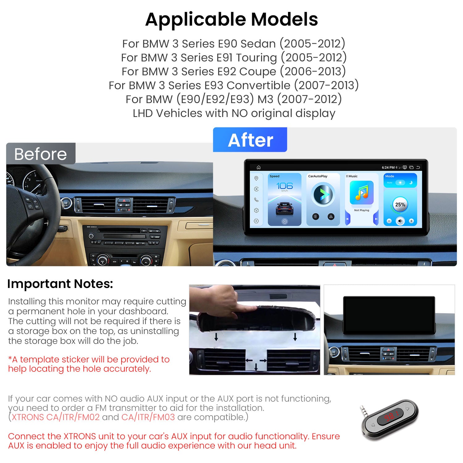 For BMW 3 Series E90 Sedan(2005-2012) For BMW 3 Series E91 Touring(2005-2012) For BMW 3 Series E92 Coupe(2006-2013) For BMW 3 Series E93 Convertible(2007-2013) For BMW(E90/E92/E93)M3(2007-2012) LHD Vehicles with NO original display