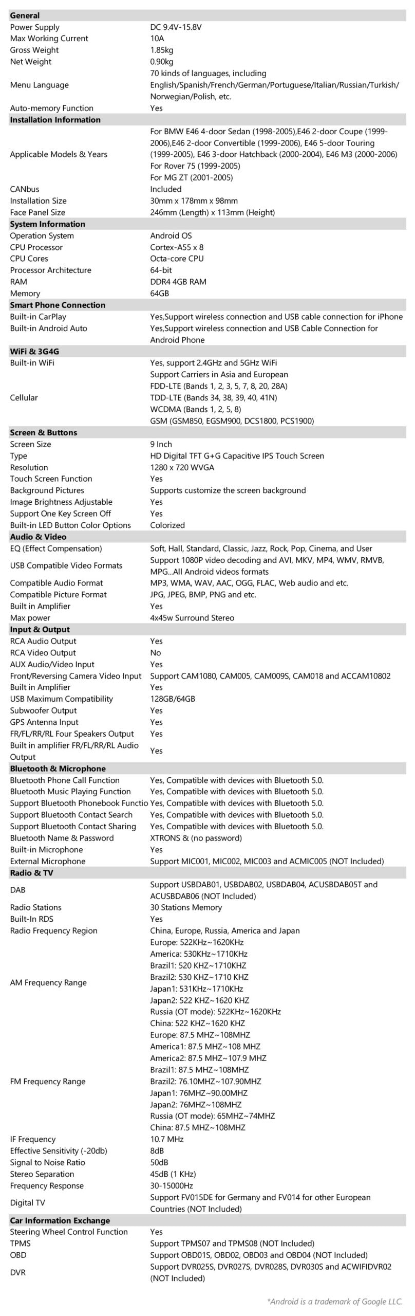 Xtrons 9'' Head Unit Display Upgrade For BMW 3 Series E46/M3 1998-2006 | 4GB RAM & 64GB ROM