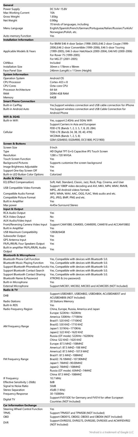 Xtrons 9'' Head Unit Display Upgrade For BMW 3 Series E46/M3 1998-2006 | 4GB RAM & 64GB ROM