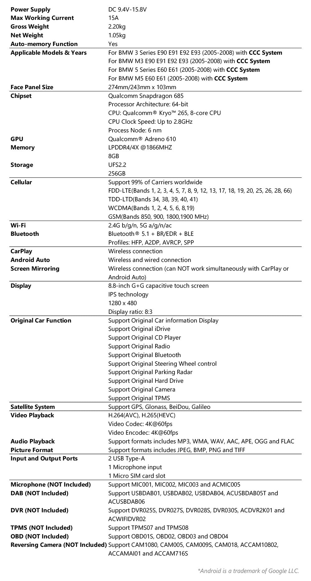 Note: This unit is for BMW vehicles that come with a CCC system.