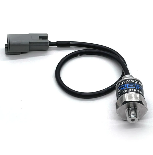 This 0-10 Bar sensor is safe for fuel pressure, exhaust gas back pressure, oil pressure, coolant pressure, and more. Paired with an ATM 2 Pin connector it is Plug-n-Play to your MOTIV Re|Flex.