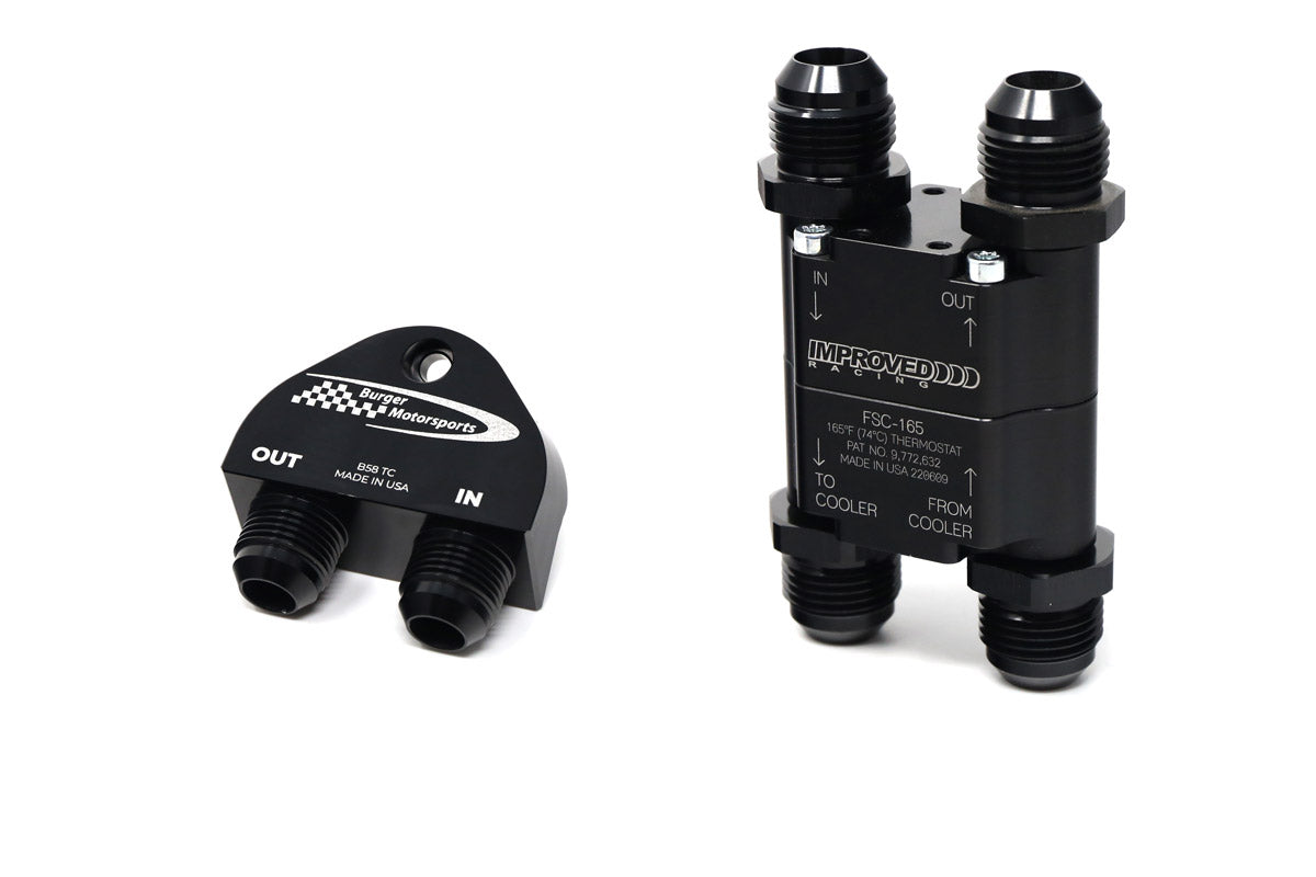Everyone knows that high heat is the enemy of your automatic transmission and that higher power levels generate more transmission fluid heat which will cause trans slip. Now you can extend the life of your automatic transmission by installing the new Burger Motorsports High Capacity B58 Gen1 Trans Cooler kit. This unique plug and play kit replaces your factory coolant to trans fluid heat exchanger with a high-capacity front-mounted air to trans fluid radiator. Includes all mounting hardware, lines, and coolant caps required for installation. Installs within the front bumper behind the driver side kidney grills providing ample airflow over the large cooling core via existing openings. The result is dramatically reduced transmission temperature and extended transmission life. This kit is strongly suggested for any BMW B58 Gen1 F chassis automatic car running larger than factory turbos.