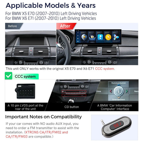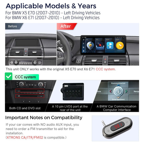 Xtrons 12.3" Head Unit Display Upgrade For BMW X5/X6/M E70/E71 2007-2009 (CCC) | 4GB RAM & 64GB ROM
