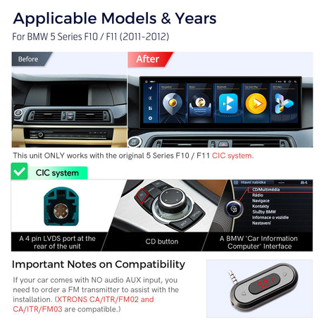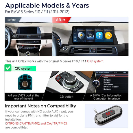 Xtrons 12.3" Head Unit Display Upgrade For BMW 5 Series F10/F11 2011-2012 (CIC) | 4GB RAM & 64GB ROM