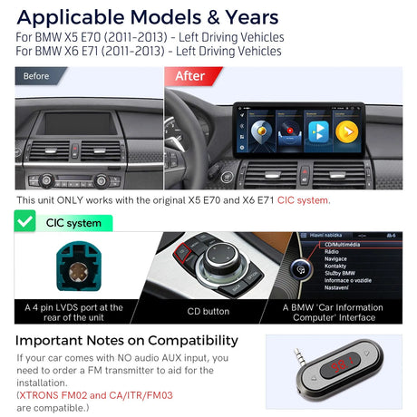 Xtrons 12.3" Head Unit Display Upgrade For BMW X5/X6/M E70/E71 2011-2013 (CIC) | 4GB RAM & 64GB ROM
