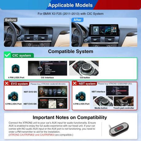Xtrons 12.3" Head Unit Display Upgrade For BMW X3 F25 2011-2013 (CIC) | 4GB RAM & 64GB ROM