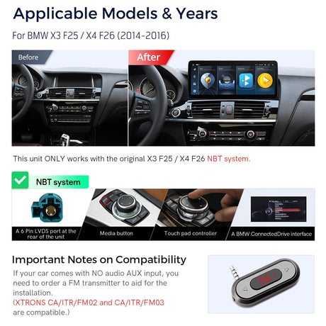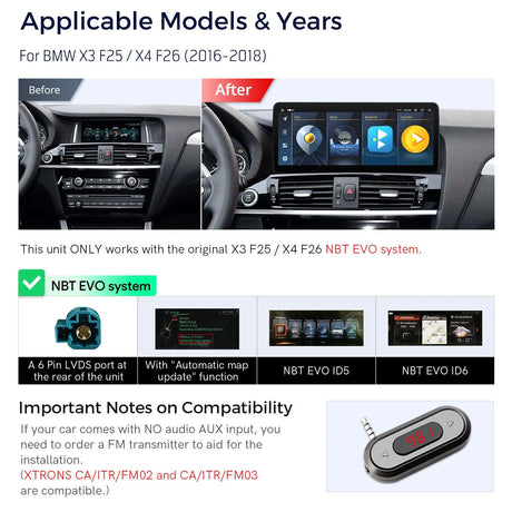 Xtrons 12.3" Head Unit Display Upgrade For BMW X3/X4 F25/F26 2016-2018 (NBT EVO) | 4GB RAM & 64GB