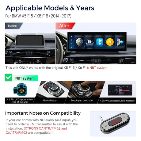 Xtrons 14.9" Head Unit Display Upgrade For BMW X5/X6 X5M/X6M F15/F16 F85/F86 2014-2017 (NBT)