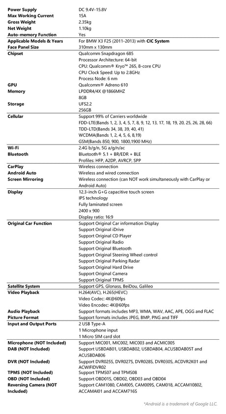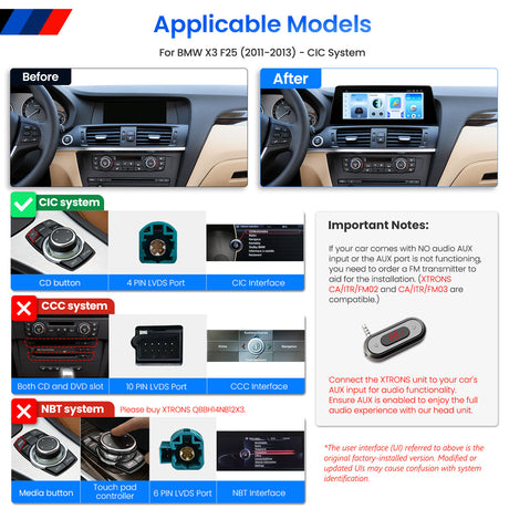 Xtrons 12.3" Head Unit Display Upgrade For BMW X3/X4 F25/F26 2011-2013 (CIC) | 8GB RAM & 256GB ROM