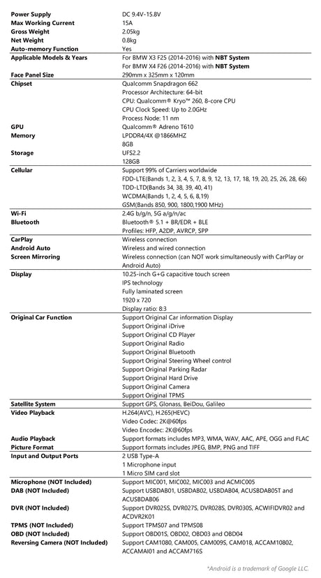 Xtrons 10.25" Head Unit Display Upgrade For BMW X3/X4 F25/F26 2014-2016 (NBT) | 8GB RAM & 128GB ROM