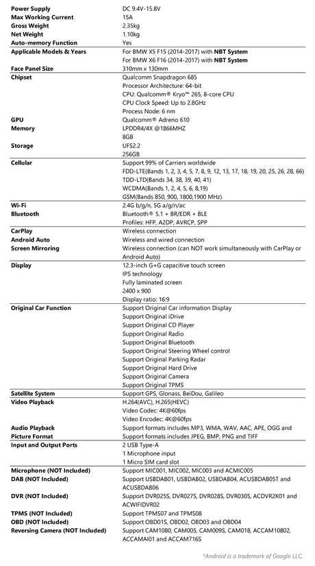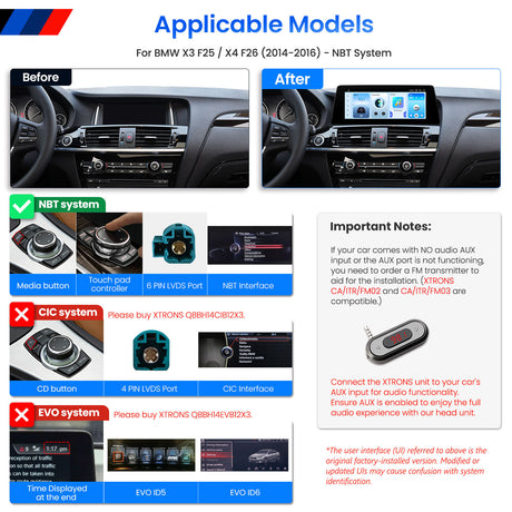 Xtrons 12.3" Head Unit Display Upgrade For BMW X3/X4 F25/F26 2014-2016 (NBT) | 8GB RAM & 256GB ROM