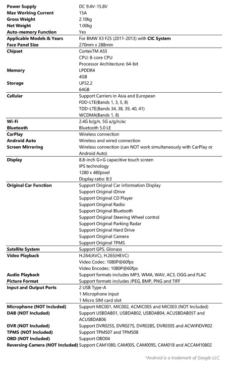 Xtrons 8.8" Head Unit Display Upgrade For BMW X3/X4 F25/F26 2011-2013 (CIC) | 4GB RAM & 64GB ROM