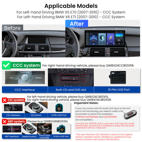 Xtrons 12.3" Head Unit Display Upgrade For BMW X5/X6/M E70/E71 2007-2010 (CCC) | 8GB RAM & 256GB ROM