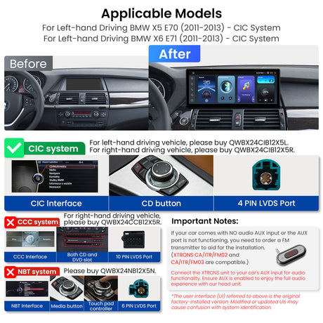 Xtrons 12.3" Head Unit Display Upgrade For BMW X5/X6/M E70/E71 2011-2013 (CIC) | 8GB RAM & 256GB ROM