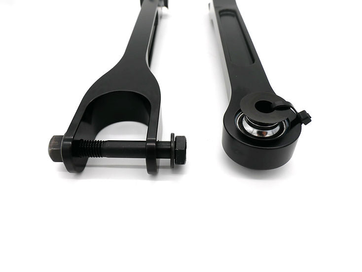The factory-installed arms offer no adjustability, and we dont really ever see a need for it in this position. This not only makes your alignment simpler, reducing the risk of misalignment, but also results in a lighter, stronger, and more cost-effective solution compared to alternatives. Enjoy enhanced performance and peace of mind knowing your geometry stays intact.