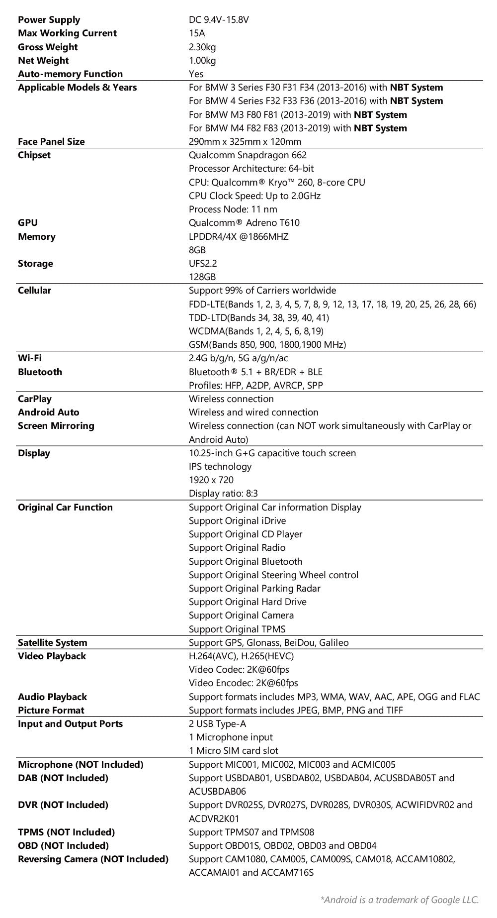 Note: This unit is for BMW vehicles that come with an NBT system.