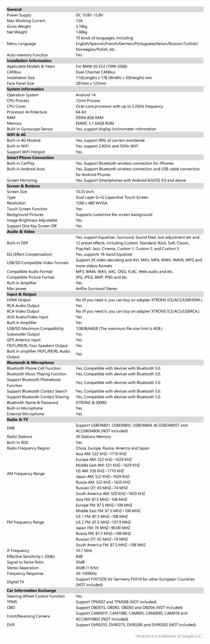 Xtrons 10.25'' Head Unit Display Upgrade For BMW X5 E53 1999-2006 | 4GB & 64GB ROM