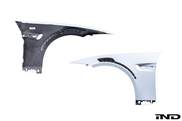 The fenders maintain OE dimensions, but include vented louvers to dissipate the air accumulated in the wheel arch, reducing air pressure and increasing downforce.